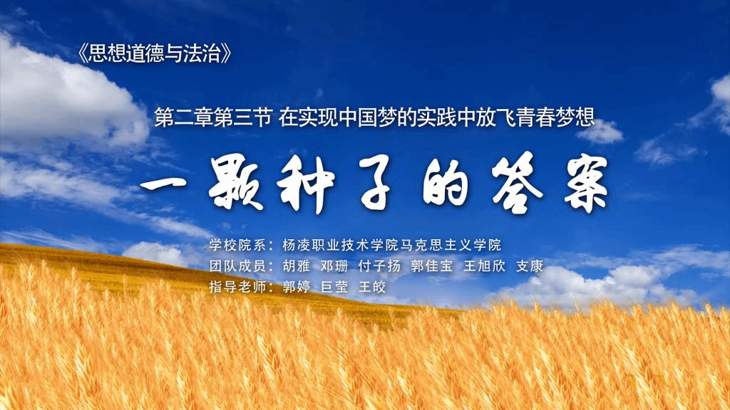 第六届全国高校大学生讲思政课公开课展示活动充分发挥高校思政课立德树人关键课程作用,坚持不懈用习近平新时代中国特色社会主义思想铸魂育人,引导学生深刻认识“两个确立”的决定性意义,增强“四个意识”,坚定“四个自信”。活动评选设置本科组和高职组,其中高职组评选出一等奖作品20件、二等奖作品30件、三等奖作品50件、优秀奖作品100件。《一颗种子的答案》作品立足我校办学特色,紧密结合学生专业,以全国著名小麦育种专家、我校研究员赵瑜老师的事迹为蓝本,以“种子梦”为主线,讲述了涉农高职学生树立理想、追求梦想的故事,从而增强学生学农爱农情怀,坚定强农兴农使命。