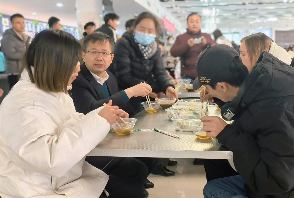 党委副书记、纪委书记王勇胜与学生一起吃饺子