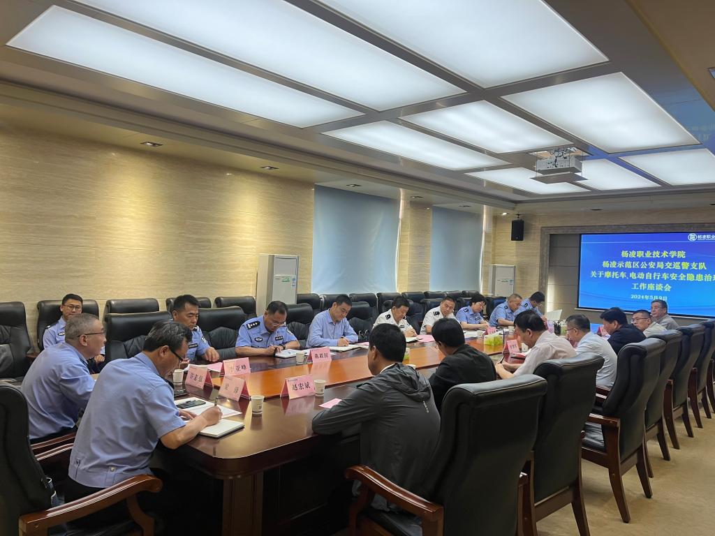 5月10日上午,学校与杨凌交警支队召开电动自行车治理座谈会。副校长张朝晖,杨凌示范区公安局党委委员、交巡警支队支队长权小虎等出席座谈会。