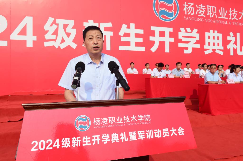 仲伟周在讲话中首先代表全校师生对来自全国各地的2024级新生表示热烈欢迎,并简要介绍了学校办学历史和基本情况。他寄语同学们,要崇德向善,做“心中有德”的新时代青年;要坚定理想,做“眼中有光”的新时代青年;要精技强能,做“肩上有责”的新时代青年;要踏实笃行,做“脚下有路”的新时代青年。他通过分享赵瑜老师“心中有德、眼中有光、肩上有责、脚下有路”的感人事迹,鼓励同学们以赵瑜老师为代表的杨职教师为榜样,心怀至善,志存高远,踏实奋进、精技强能,努力成长为可堪大用的德智体美劳全面发展的社会主义建设者和接班人。他希望,同学们要在军训中深化认识、增强观念,不断提升国防意识和爱国热情;耐得辛苦、忍得枯燥,面对各种困难,时刻保持饱满的热情和高昂的斗志;严守纪律、争当标兵,养成良好的习惯,争创佳绩,与教官共同努力,圆满完成军训任务,上好进入大学的第一课。