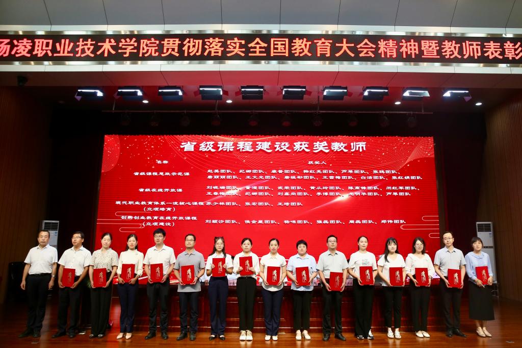 韩明军在讲话中,代表学校党委向全体教职工致以诚挚的问候,向老师们的辛勤付出和努力工作表示最崇高的敬意,向受到表彰的教师们表示热烈祝贺,并介绍了一年来学校取得的一系列标志性成果和显著发展成就。他指出,习近平总书记在全国教育大会上的重要讲话,为新时代广大教师的职业追求指明了方向、提供了根本遵循。他强调,作为教师,一是要守初心、担使命,做从教报国的践行者;二是要树品行、提能力,做立德树人的大先生;三是要抓教书、重育人,做学生成长成才的引路人;四是要挑重担、勇向前,做学校发展的推动者。希望广大教师认真学习贯彻落实全国教育大会精神,不忘初心、不辱使命,自觉维护学校形象和利益,在杨凌职院这个大舞台上,继往开来、不懈奋斗,奋力书写当代杨职人躬耕教坛的精彩答卷,努力开创学校事业发展的崭新篇章。