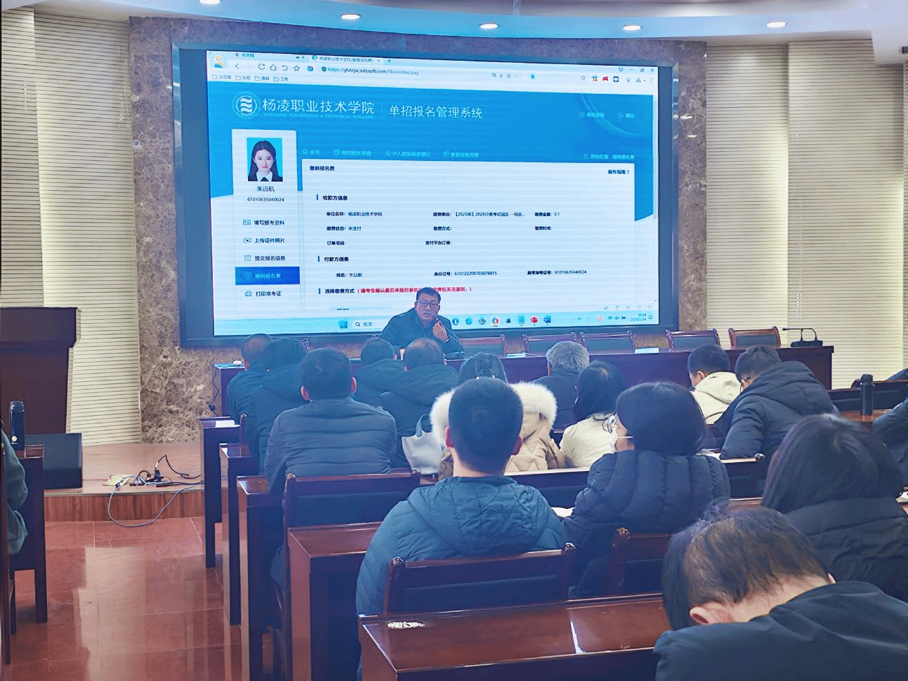 会上,招生就业处汇报了2024年学校招生工作情况,深入剖析了当前招生形势,解读了2025年全省单招和新高考政策,安排了2025年招生工作。单招报考系统公司技术人员详细介绍了系统操作流程和注意事项,开展了报名流程业务培训。