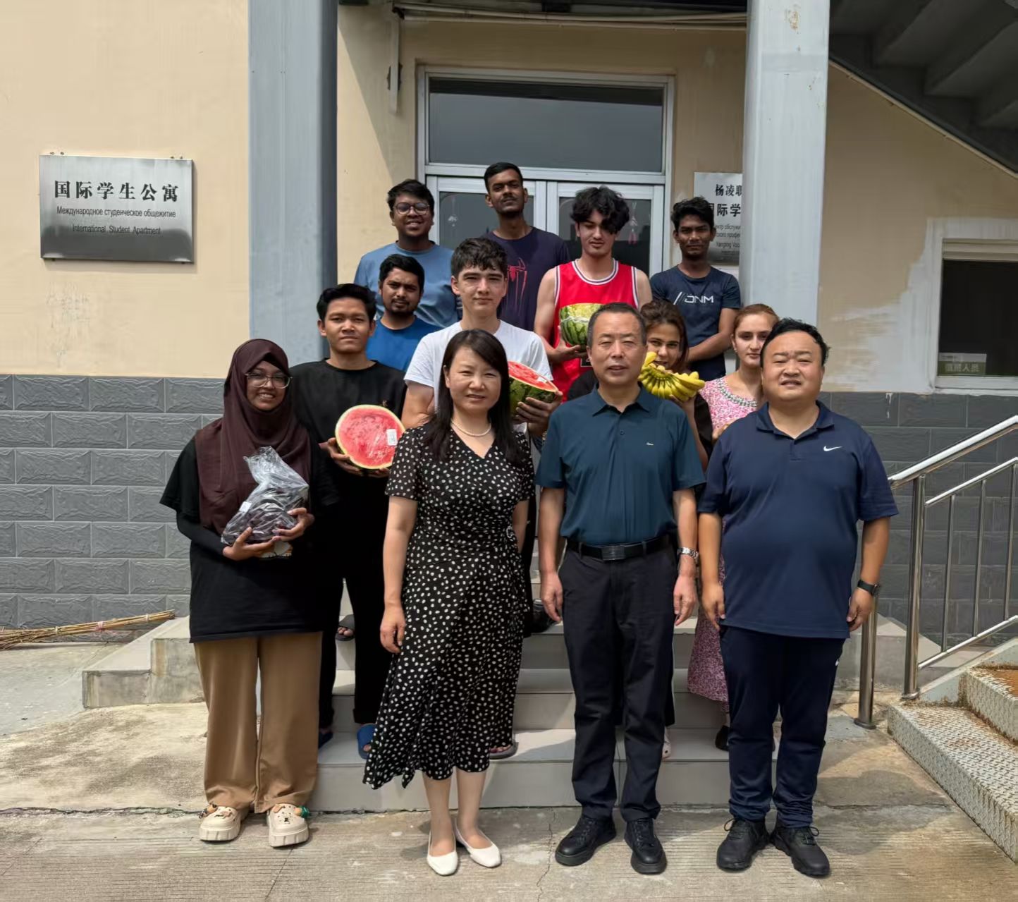 胡俊鹏与国际学生亲切交谈,深入了解了大家暑期留校的学习和生活情况。得知国际学生留校期间积极备考汉语等级考试,他代表学校给学生送上水果表示慰问,希望留学生在华留学期间学好中文和专业课,遵守学校纪律和公寓管理制度,提高安全防范意识,保障人身财产安全,度过一个平安愉快的假期。