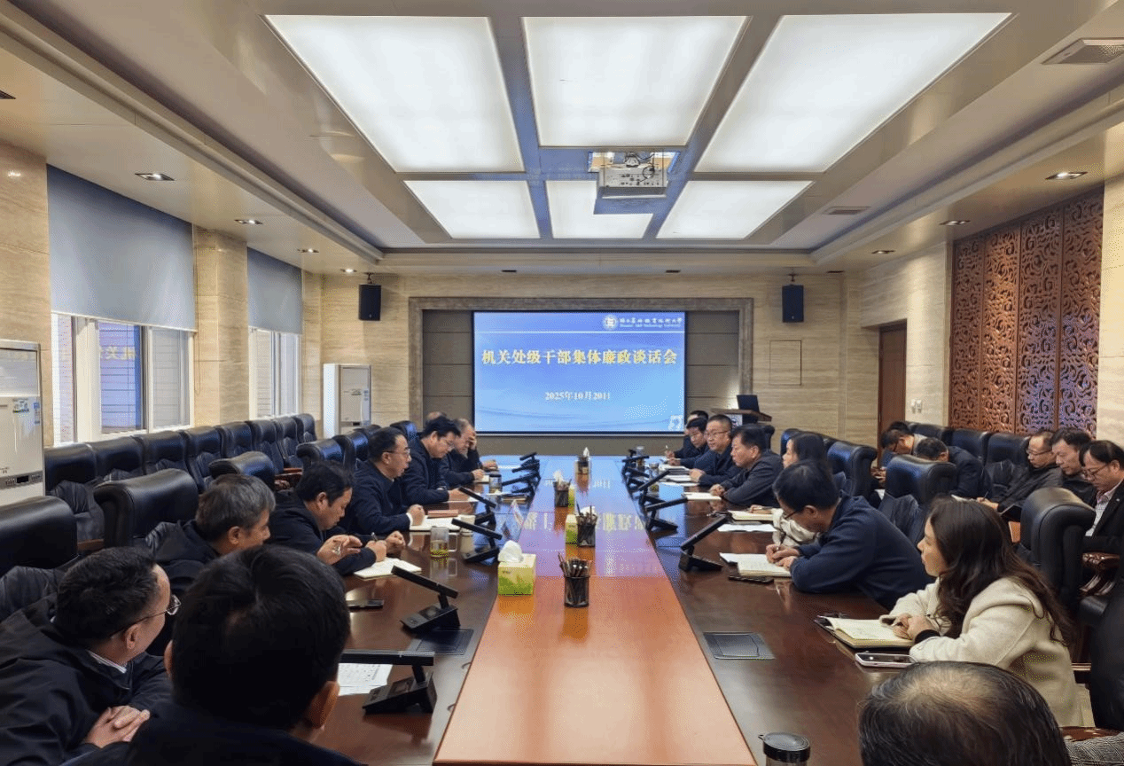 10月20日下午,学校召开机关处级干部集体廉政谈话会。党委副书记、纪委书记、监察专员康强同志作廉政谈话,机关各部门全体处级干部参加会议。