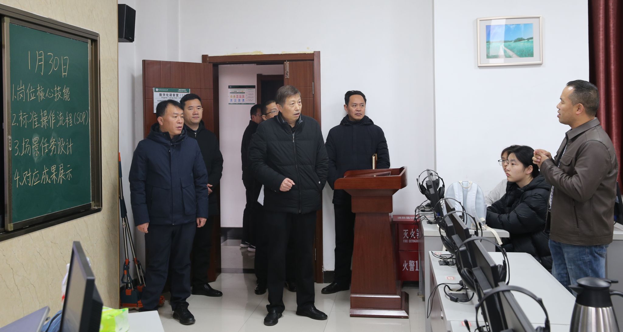在教学实训室和实训中心,检查组重点检查了实训安全规范落实、实训仪器设备管理使用、消防器材配备使用等情况,还与备战技能竞赛的同学们亲切交流,叮嘱大家在专注备赛的同时,也要遵守实训安全操作规程,筑牢实训安全防线。在学生宿舍,检查组详细检查了学生离校登记情况、宿舍安全等,询问了国际留学生的假期学习及生活安排,要求做好留校学生外出登记等管理服务工作,保障留校学生的生活安全。在监控室、热换站、控制室、食堂等区域,检查组检查了值班值守情况。在家属院活动室,检查组叮嘱离退休老教师保重身体、安享生活,继续为学校建设发光发热。在滨河校区施工现场,检查组仔细查看了工程进度、安全防护措施及施工人员的操作规范,强调在寒假期间要确保施工安全,要求施工单位合理安排假期施工计划,确保新校区建设稳步推进,为师生入驻创造良好条件。