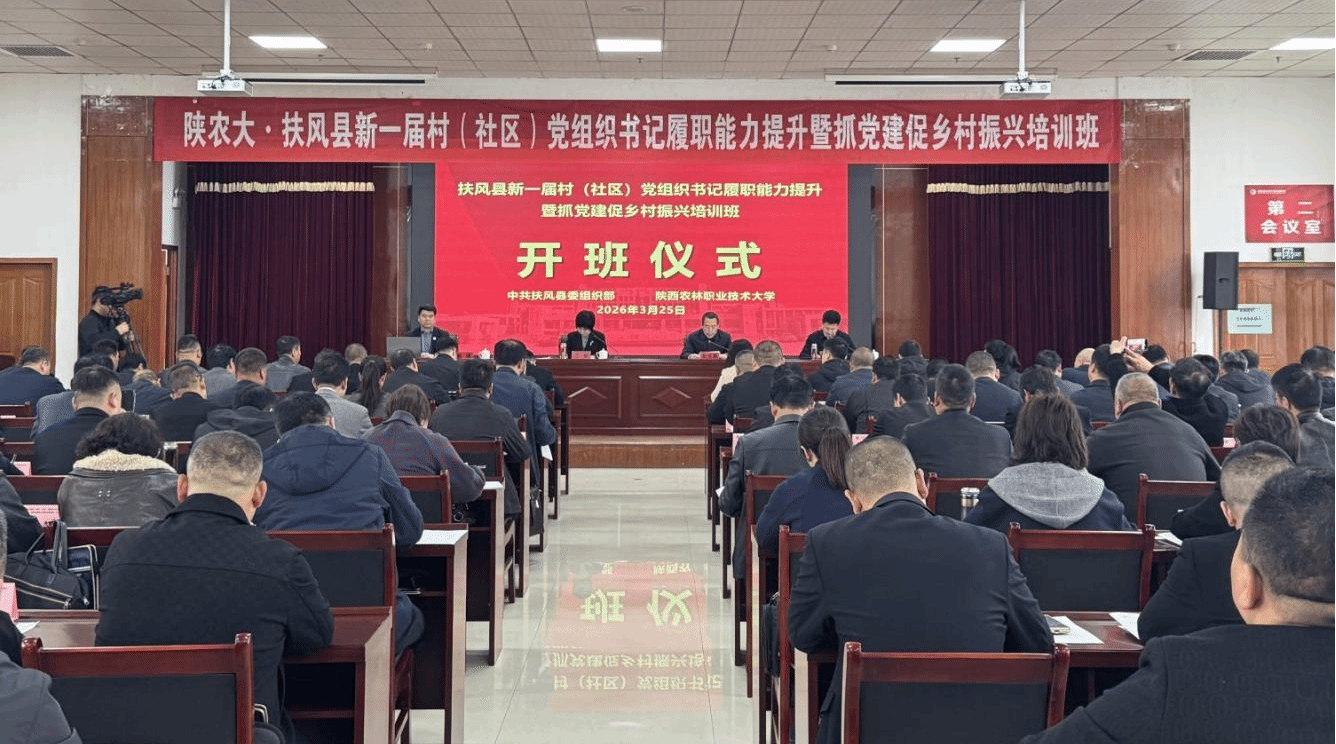 3月25日,由我校承办的扶风县新一届村(社区)党组织书记履职能力提升暨抓党建促乡村振兴培训班正式开班。副校长胡俊鹏出席开班式并致辞,扶风县委书记王丽出席开班式并作专题报告。扶风县各村(社区)党组织书记参加培训。