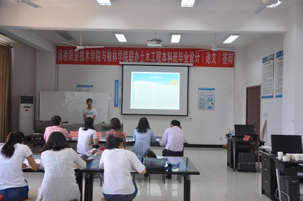 土木工程专业的毕业答辩在我院建筑工程分院的安排下,由榆林学院建筑工程学院院长马小莉教授、土木工程教研室主任彭军副教授、我院建筑工程分院刘洁副教授、赵毅力副教授、王琦副教授组成答辩小组,答辩于5月27日上午在南校区NOD337举行。答辩由学生报告、答辩委员提问、学生答辩三个环节组成,各位学生精心准备,向各位老师报告了设计(论文)选题意义,研究内容和研究成果等,老师们也向各位同学进行提问,并提出了修改完善的意见。最后经答辩小组评议和投票,参加答辩的10名学生全部通过了此次答辩。