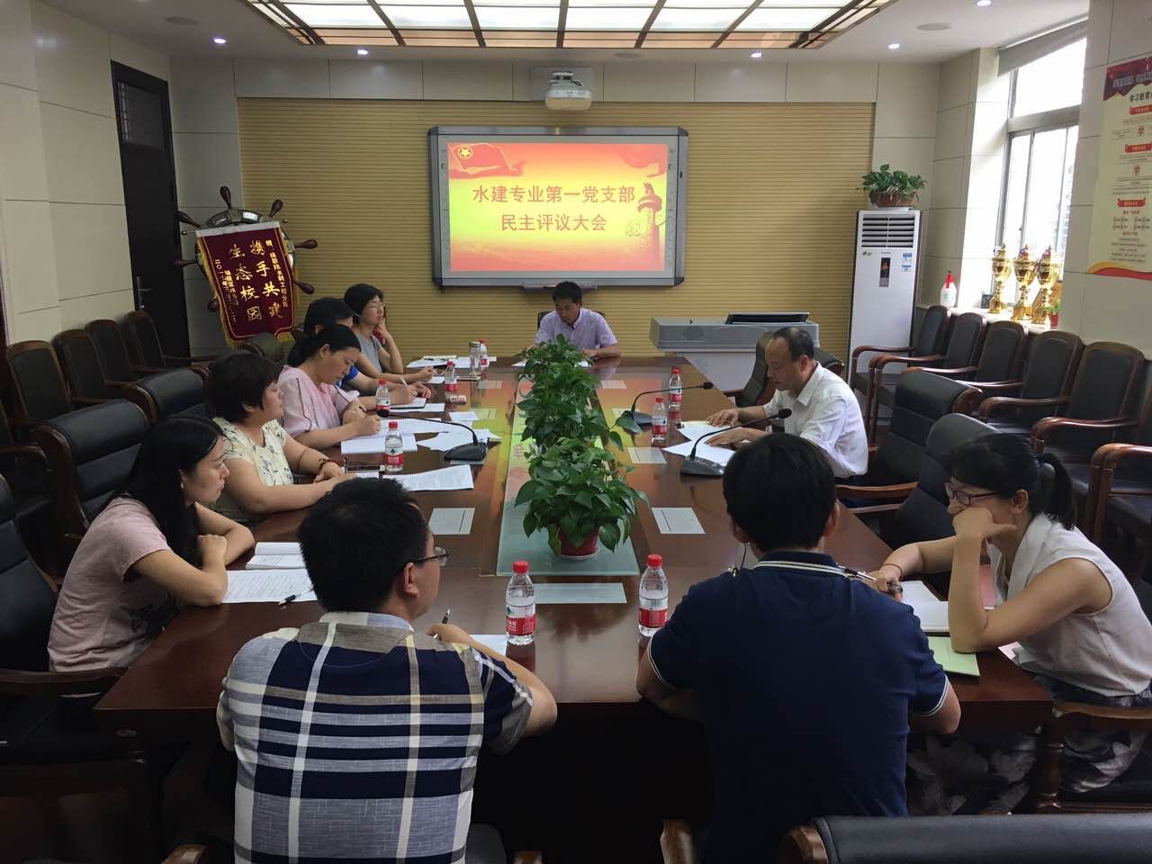 6月19日,水利工程分院水建专业第一党支部在天润楼122党员活动室召开了党员民主评议大会。党委书记赵曼以支部党员身份参加会议,水建专业第一党支部党员共12人参加民主评议。