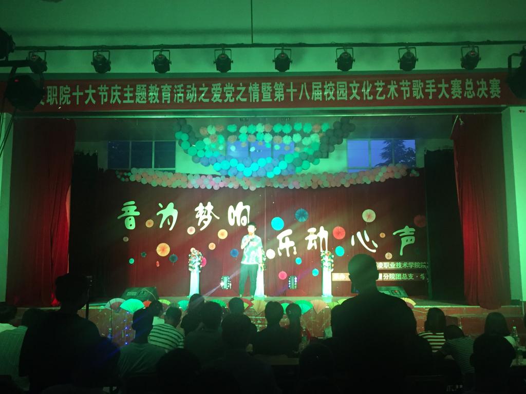 唱出活力青春,释放激情无限!为了丰富我院学生校园文化生活,纪念建党96周年, 6月26日晚,我院在北校区大礼堂举行了“杨凌职院十大节庆主题教育活动之爱党之情暨第十八届校园文化艺术节歌手大赛总决赛”,来自各分院的12名学生歌手在北校区大礼堂隆重开唱。院团委、旅游与管理分院负责人,部分团总支书记、学院团委委员、学生会委员及400余名学生代表观看了比赛。