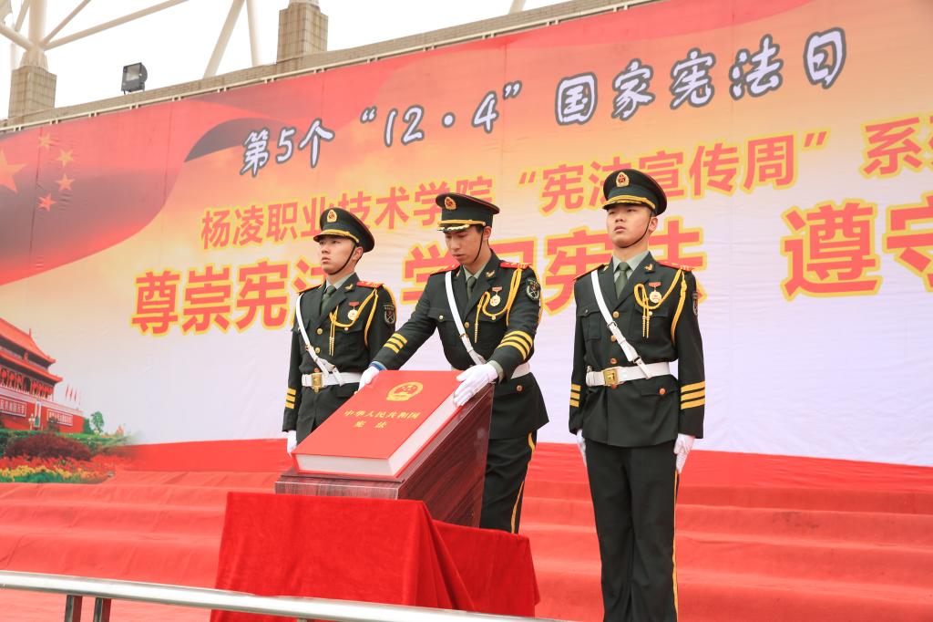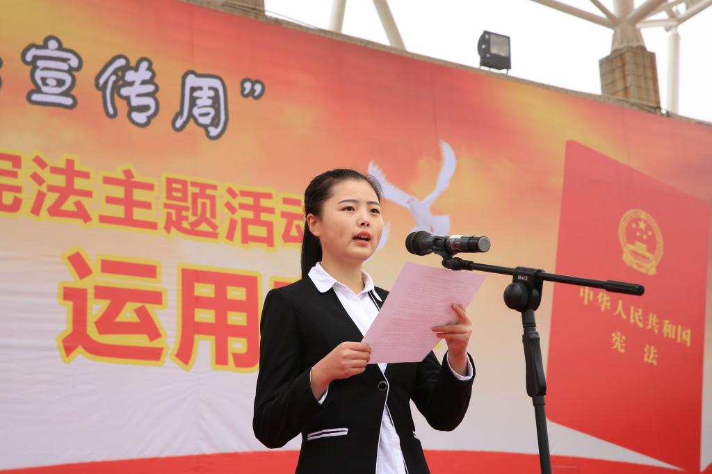 在升起的五星红旗和雄壮的国歌声中,学生代表王乐怡宣读了《“12.4国家宪法日”学习宪法倡议书》,全体师生目迎仪仗队护送宪法入场。随后,千名师生齐声朗诵《宪法》节选部分章节。活动现场严肃而庄重,千名师生在诵读中学习、在诵读中感悟,通过诵读《宪法》呼吁全院师生增强宪法意识、弘扬宪法精神、加强宪法实施,全面推进依法治国。
