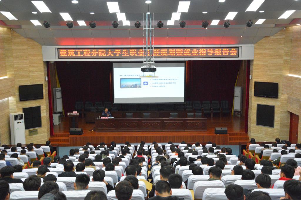 建筑工程分院相关负责人、辅导员、教师代表及2016级、2017级学生代表共330余人参加了报告会。