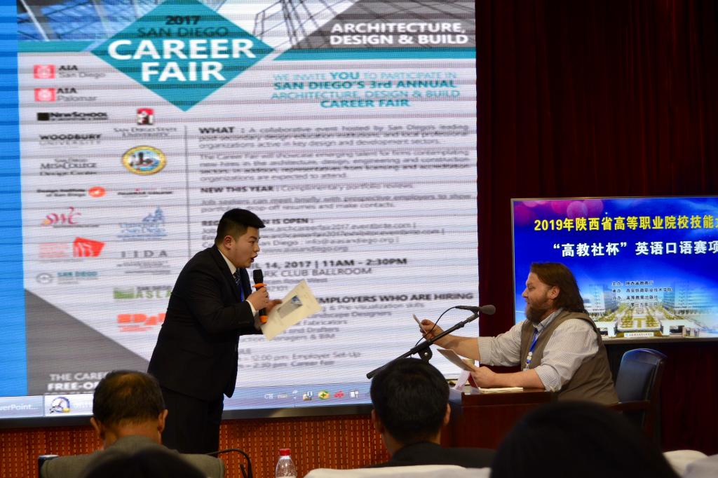 本次赛项一共有来自全省39所高职院校的77名参赛选手,其中专业组17名、非专业组60名。赛事分为半决赛和决赛,共三个环节的比赛,半决赛为职场陈述(Presentation),决赛包括职场交流(Interview)和职场考验(Debate)两个环节。