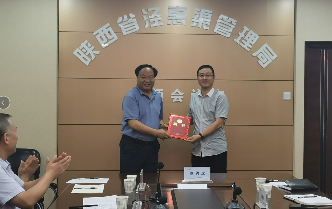 为全面深化校企合作和产教融合,扎实推进“双高计划”水利工程专业群建设工作, 8月20日上午,我院与泾惠渠灌溉管理局校企合作签约暨技能导师聘任仪式在三原县泾惠渠灌溉管理局会议室举行。院长王周锁、科技与教育研究处处长冯旭、水利工程分院党总支书记刘儒博、水利工程分院院长郝红科,泾惠渠灌溉管理局局长李满良、副调研员孙刚锋、计划处处长李勇军、灌溉处处长吉平、技术骨干石小庆等出席签约仪式。