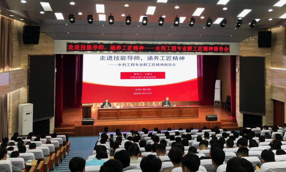 10月19日,全国水利行业首席技师王战义来校为水利工程分院师生作了题为《弘扬工匠精神,成就精彩人生》的专题报告。水利工程分院全体师生在南校区醒钟楼思辩堂聆听了报告。