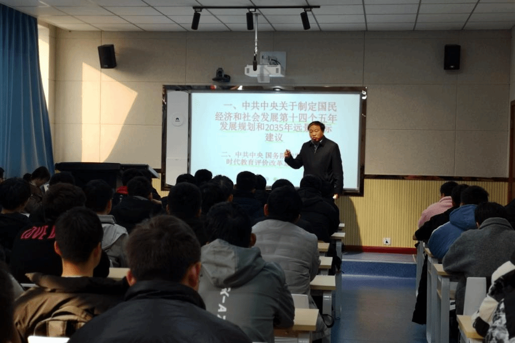 讲课中,王周锁为学生宣讲了党的十九届五中全会,对《中共中央关于制定国民经济和社会发展第十四个五年规划和二〇三五年远景目标的建议》和中共中央、国务院印发的《深化新时代教育评价改革总体方案》进行了准确的解读。围绕《建议》,他重点对新发展阶段、新发展理念、新发展格局三个方面进行了阐述。在《总体方案》方面,他从总体要求、重点任务、组织实施三个方面进行了解读。