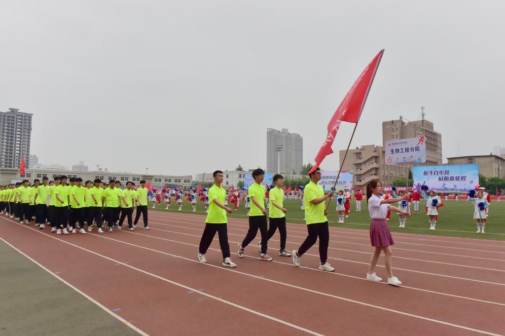 展青春风采,扬运动雄风。4月22日至23日,我校2021年春季田径运动会在南校区体育场举行。学校党委副书记、校长王周锁,副校长张迪、祝战斌、胡俊鹏,各学院(部)党总支书记、院长、各处室(中心)负责人以及大一、大二辅导员、学生近万余人参加了开、闭幕式。来自11个学院的400余名运动员参加了28个项目的角逐。
