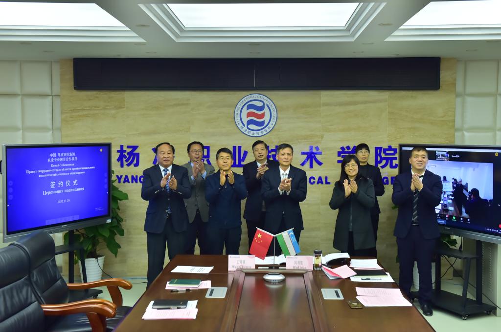 11月29日下午,由杨凌职业技术学院、古利斯坦国立大学、杨凌现代农业国际合作有限公司共同合作的中国-乌兹别克斯坦农业专业教育合作项目(杨凌职业技术学院古利斯坦国立大学现代农业学院)建设合作协议签约仪式在线上举行。