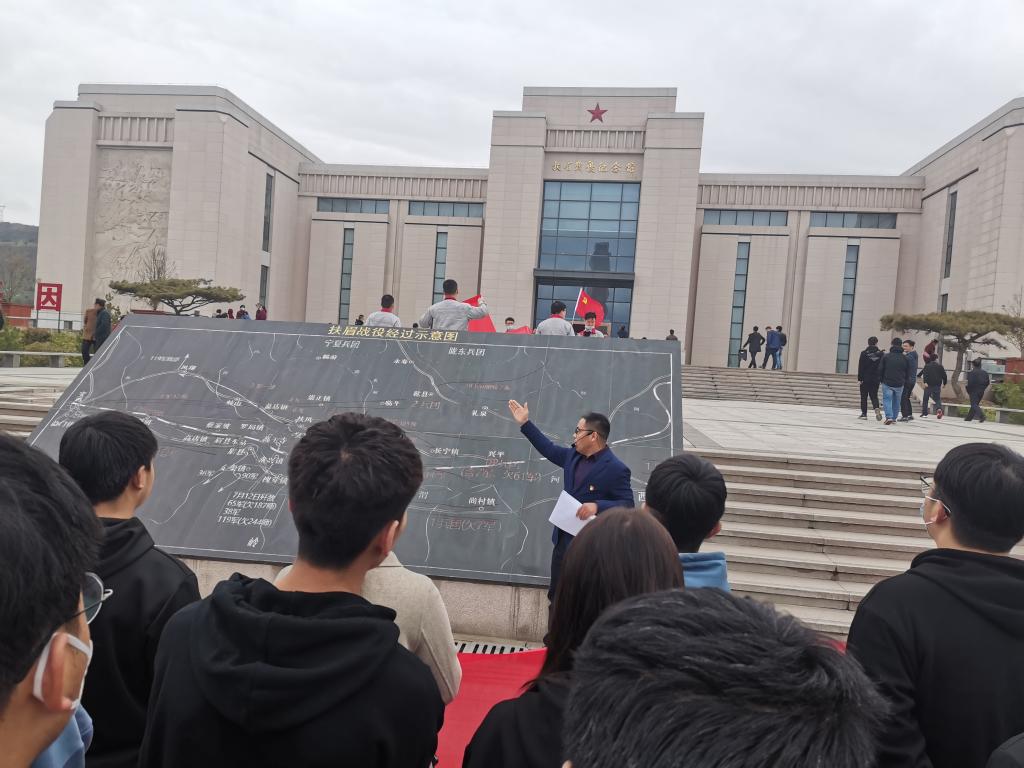 全体师生怀着无比敬仰的心情向革命先烈敬献花篮、肃立默哀,并重温入党誓词。随后,大家参观了扶眉战役纪念馆,看到一幅幅生动的历史照片和一件件翔实珍贵的实物史料,大家仿佛置身于战火纷飞的解放战争年代,深切感受到幸福生活的来之不易。最后,大家前往烈士墓区进行扫墓活动。