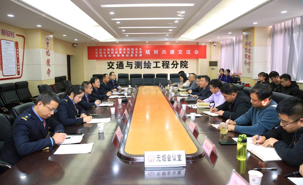 11月29日下午,交通与测绘工程学院党总支与杨陵车站党支部、杨陵南站党支部开展结对共建交流活动。校党委副书记、纪委书记王勇胜,杨陵车站党支部书记赵志伟、杨陵南站党支部书记赵志选、交通与测绘工程学院院长张养安,以及各支部委员和学生党员代表共20余人参加了活动。活动由交通与测绘工程学院党总支副书记邓留坤主持。