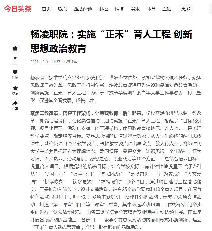 【今日头条】杨凌职院:实施“正禾”育人工程 创新思想政治教育