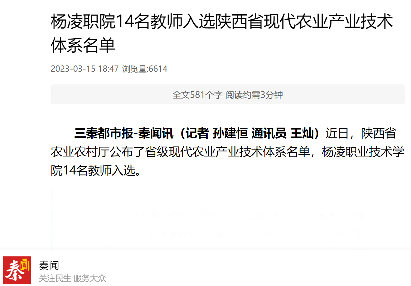 【秦闻】杨凌职院14名教师入选陕西省现代农业产业技术体系名单