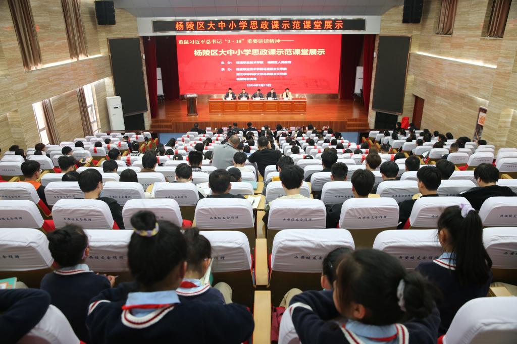三秦都市报-秦闻讯(通讯员 马玲娟)为切实发挥思政课教学标兵示范作用,积极推进杨陵区大中小学思政课一体化建设,3月15日下午,杨陵区大中小学思政课示范课堂展示活动在杨凌职业技术学院举办。现场为杨陵区大中小学思政课一体化协同中心揭牌。