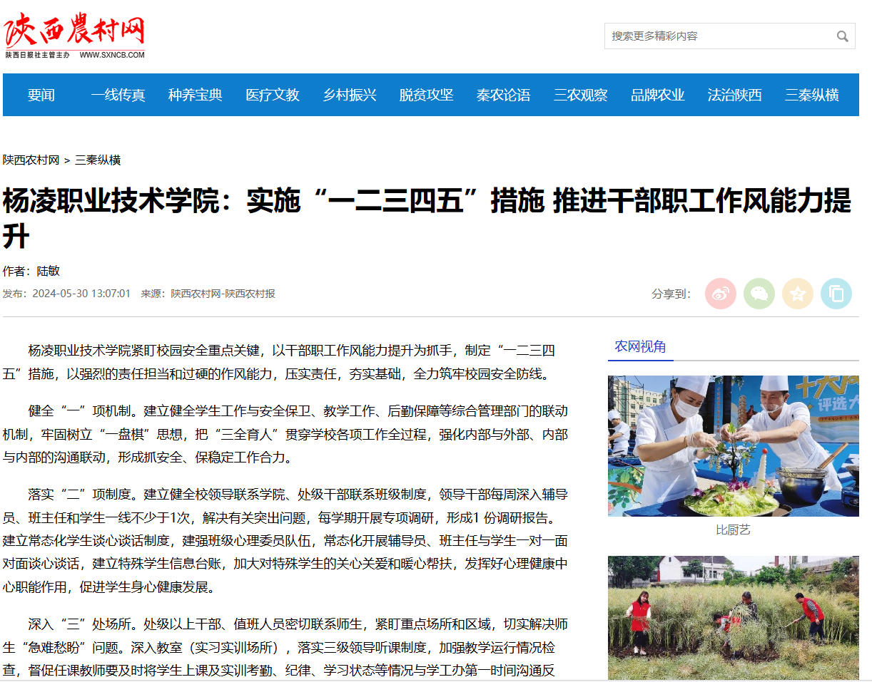 【陕西农村网】杨凌职业技术学院:实施“一二三四五”措施 推进干部职工作风能力提升