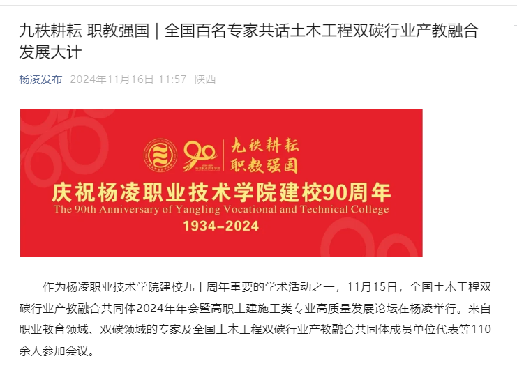 【杨凌发布】九秩耕耘 职教强国 | 全国百名专家共话土木工程双碳行业产教融合发展大计