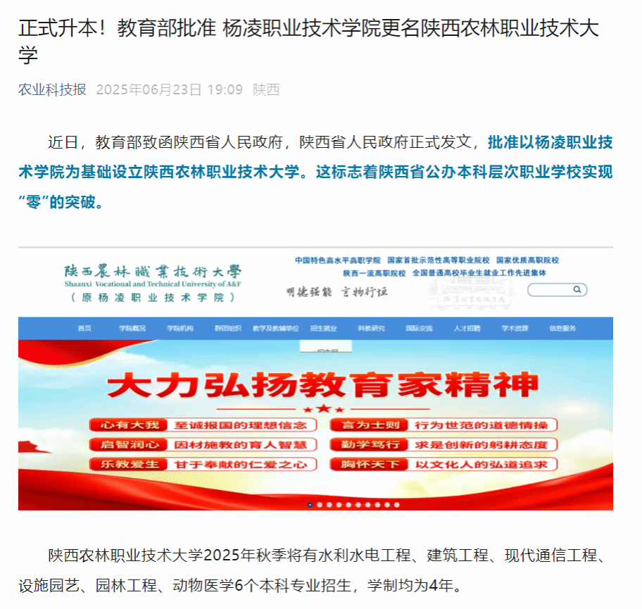 陕西农林职业技术大学2025年秋季将有水利水电工程、建筑工程、现代通信工程、设施园艺、园林工程、动物医学6个本科专业招生,学制均为4年。
