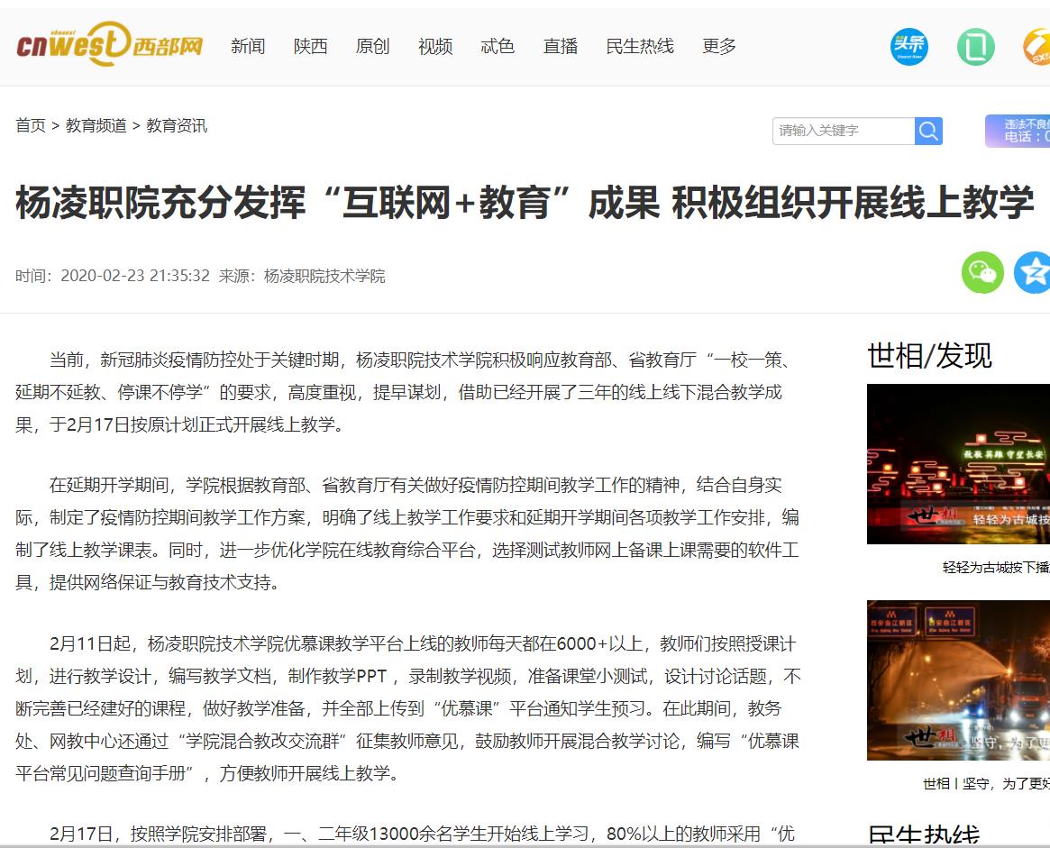 当前,新冠肺炎疫情防控处于关键时期,杨凌职院技术学院积极响应教育部、省教育厅“一校一策、延期不延教、停课不停学”的要求,高度重视,提早谋划,借助已经开展了三年的线上线下混合教学成果,于2月17日按原计划正式开展线上教学。