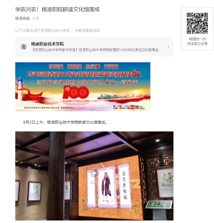 9月2日上午,杨凌职业技术学院耕读文化馆落成。
