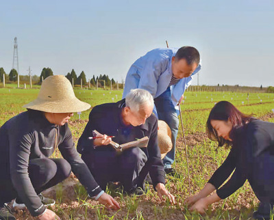 赵瑜(左二)在观察记录小麦生长情况。史良琦 摄
